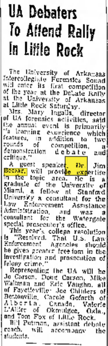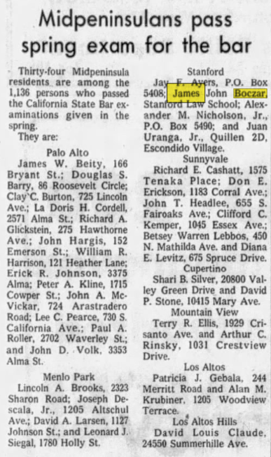 In October 21, 1968, James. J. Boczar was a Legal Intern for Dade County, Florida.