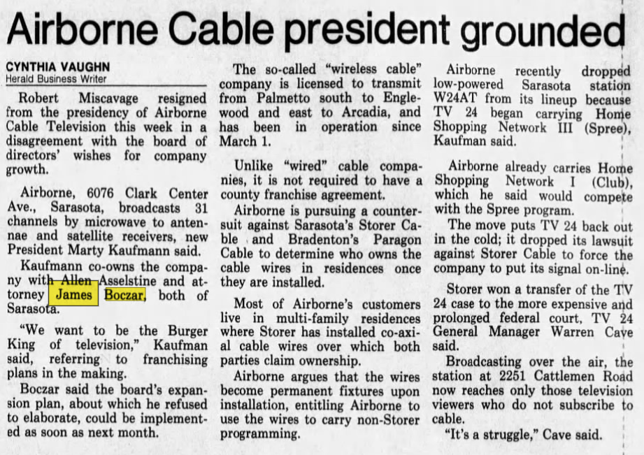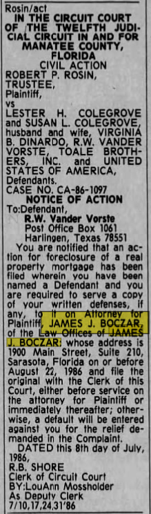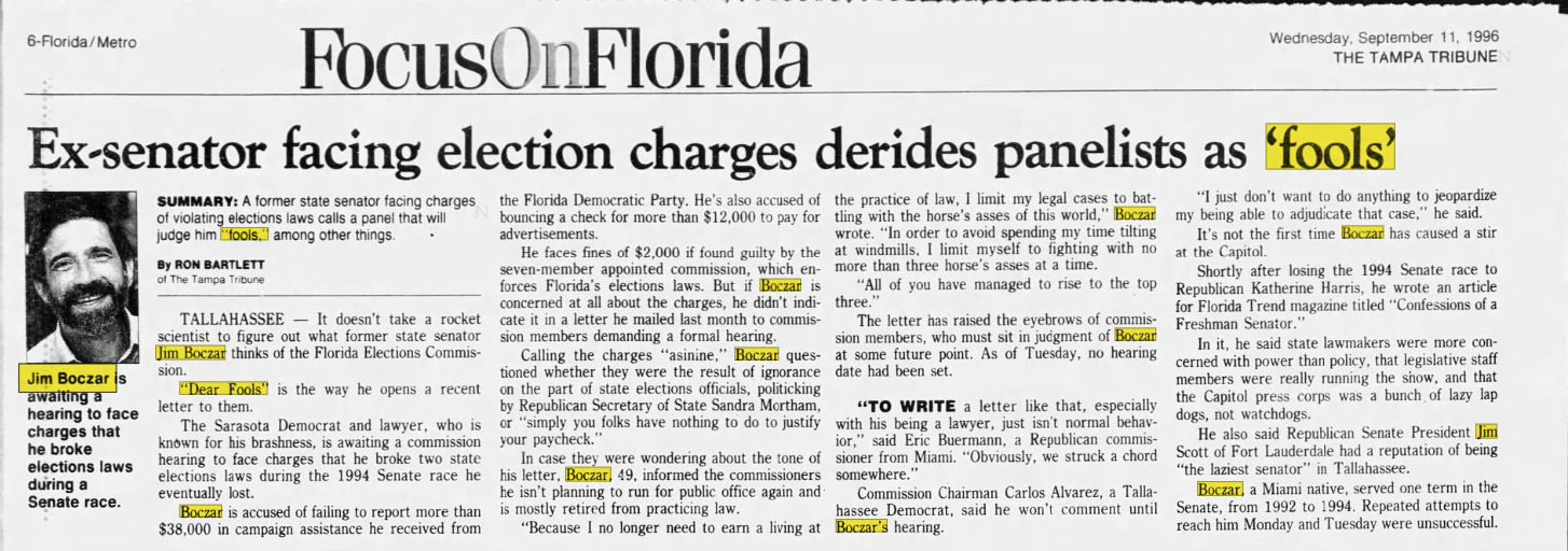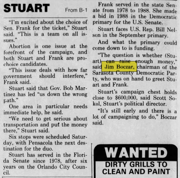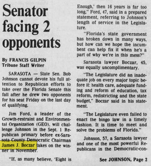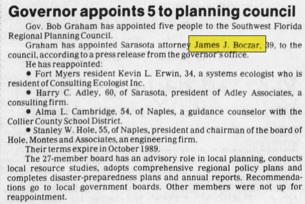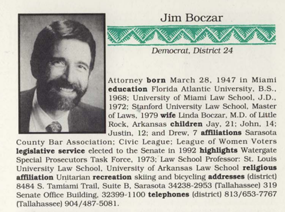Jim Boczar was elected state senator for Sarasota. In his bio it lists Morrison as “Jay” and identifies his step-brothers, John, Justin and Drew. This was 2 years before Jay would change his name to James Hafele Morrison.