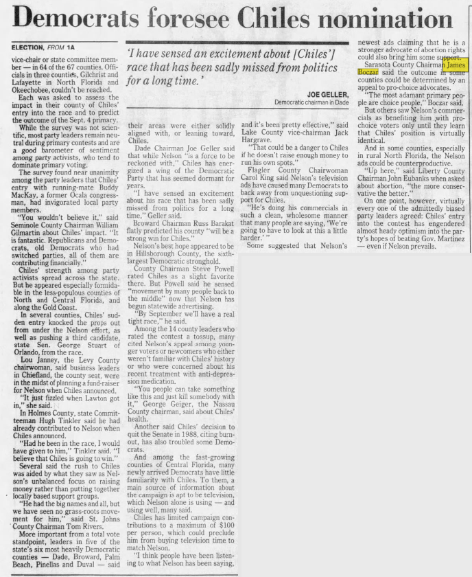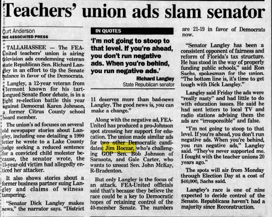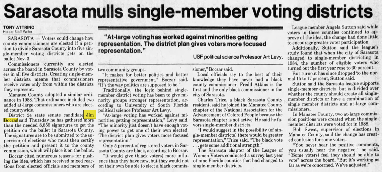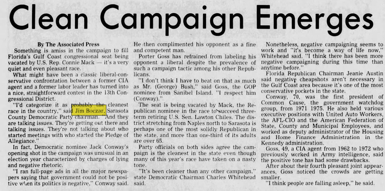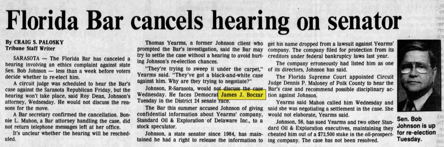 James Boczar (D) lost his reelection to Florida Senate race. Katherine Harris would go on to replace him.