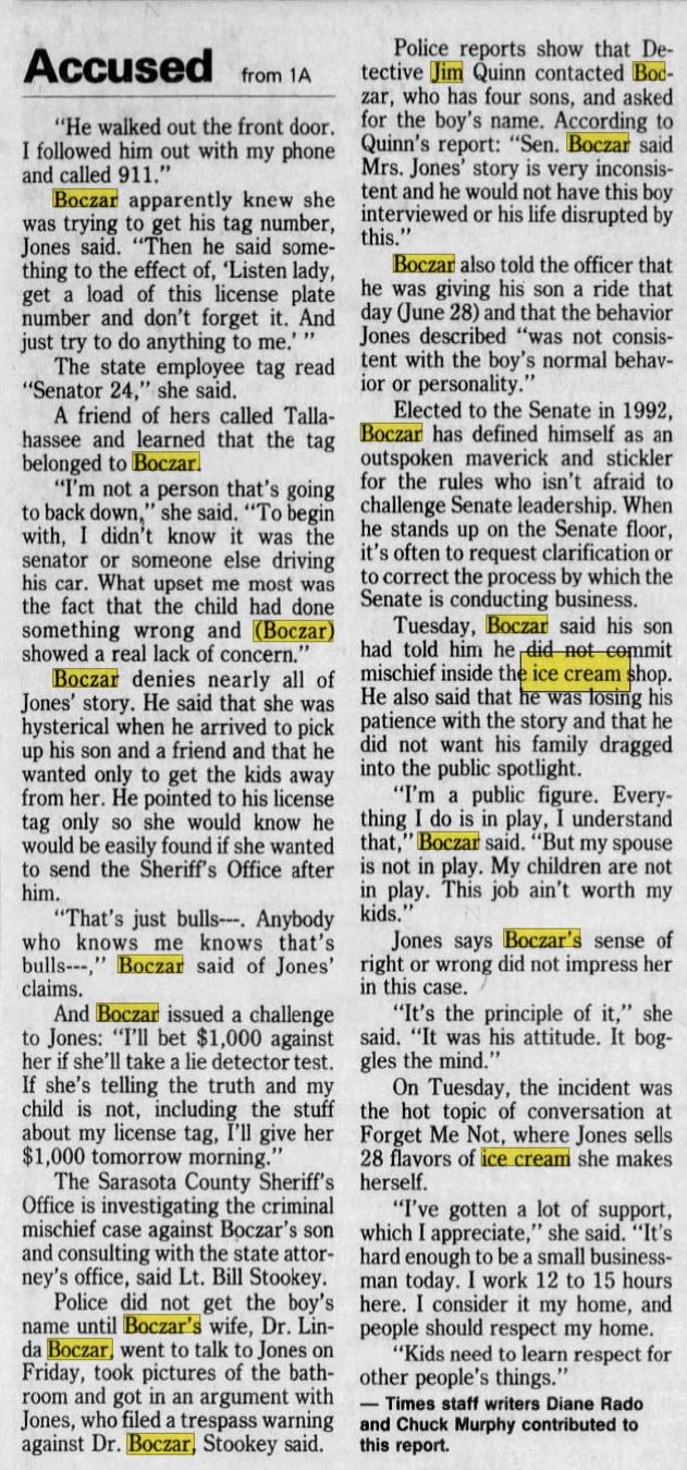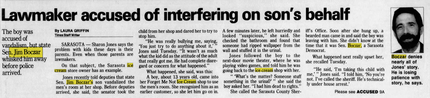*The alleged age of the boy would suggest this was Morrison's step-brother Justin Boczar who was reported to have vandalized the ice cream shop.