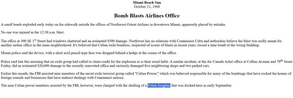 Notably, the deposition he worked in that was found had to do with the Air Canada office bombing related to a Cuban terrorist group.