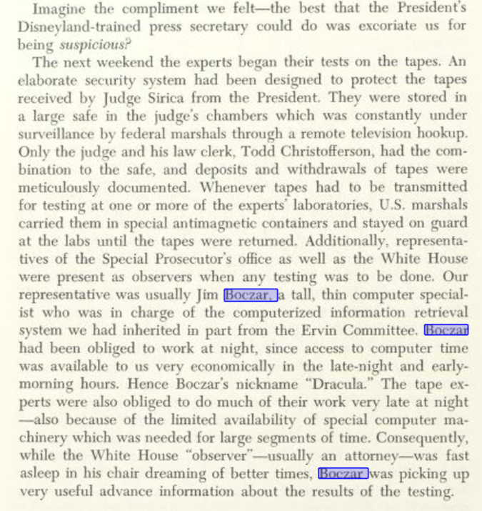Mentions of Boczar role in Watergate from various books: