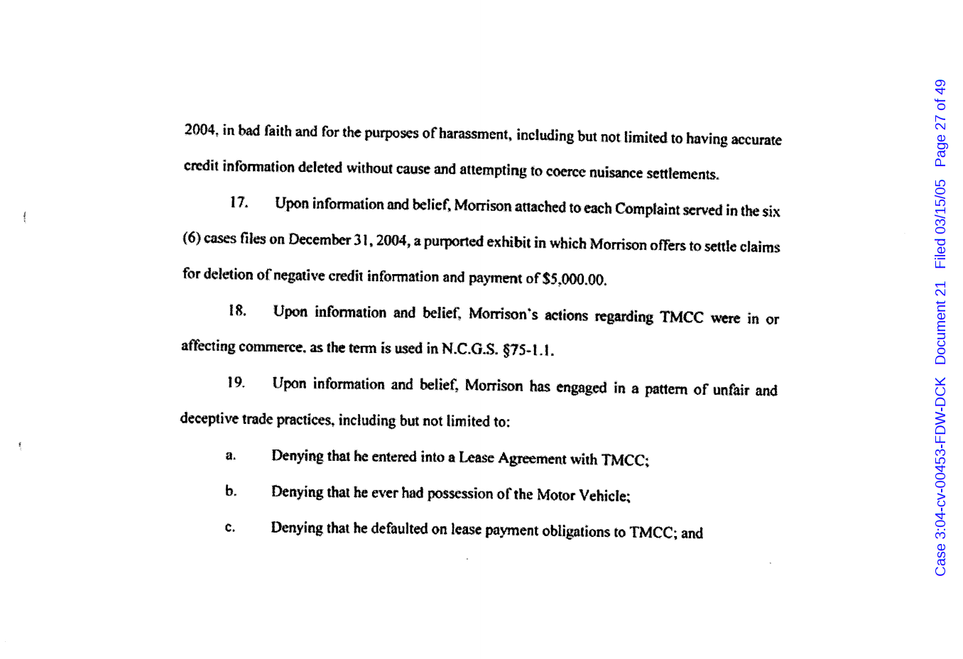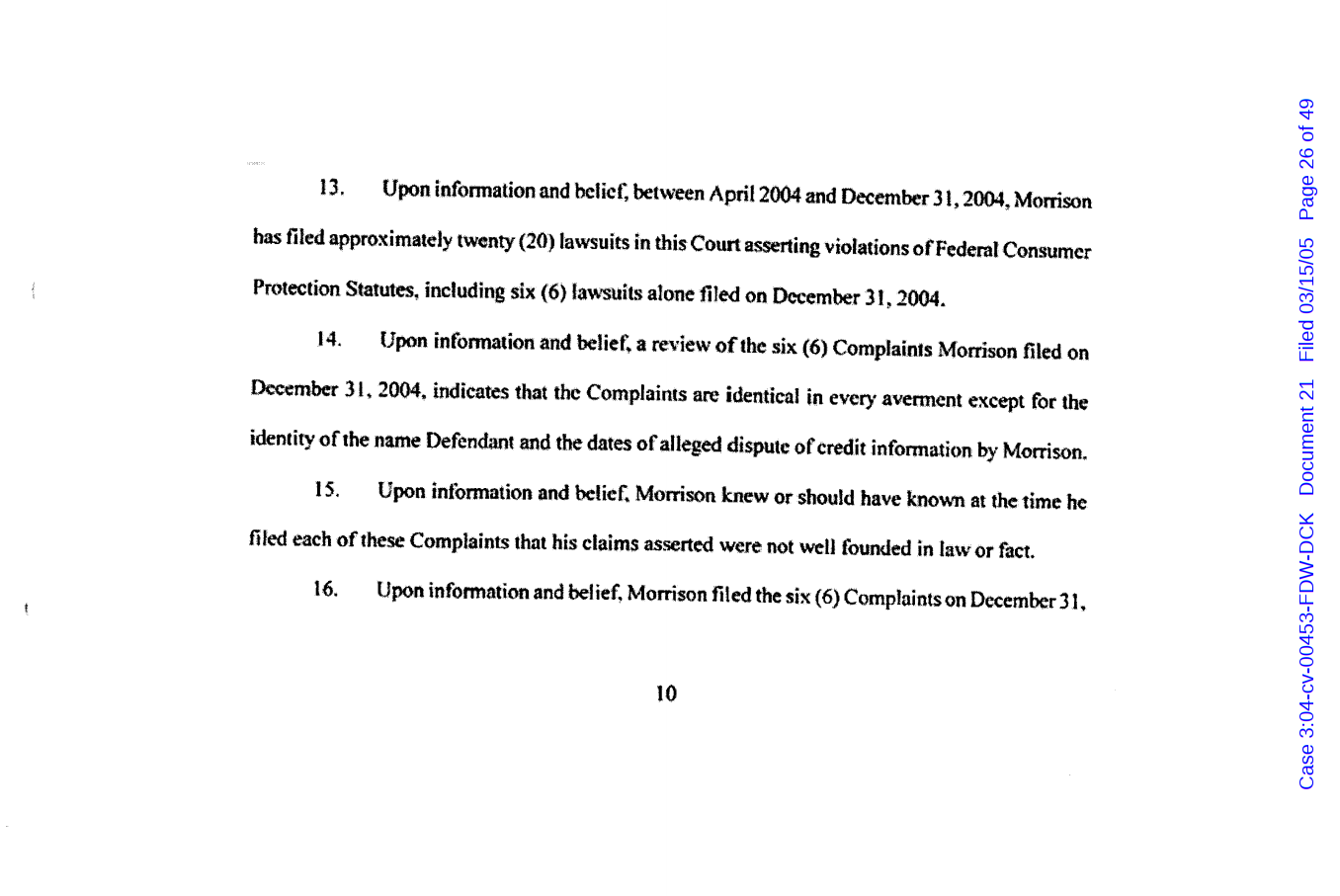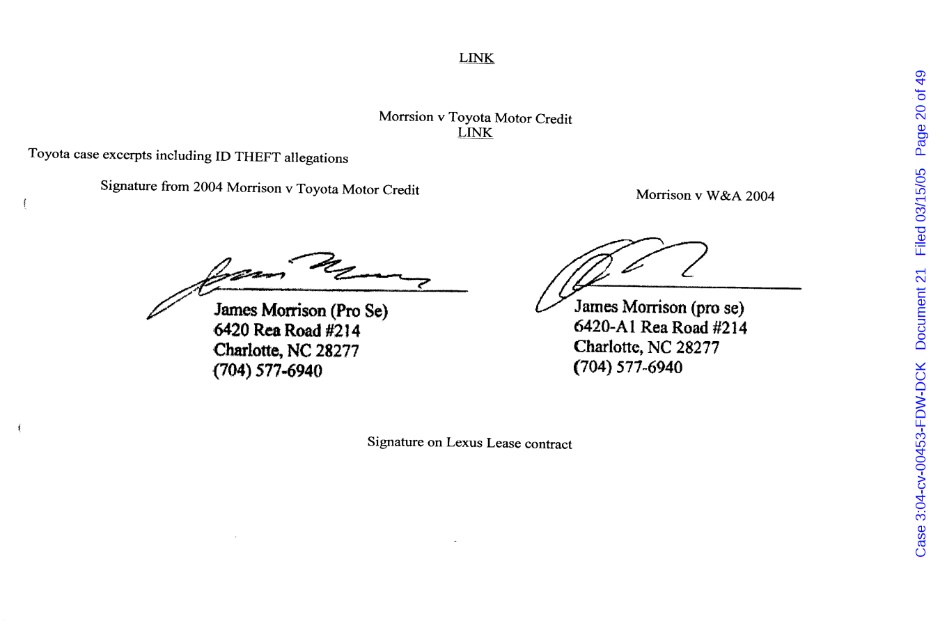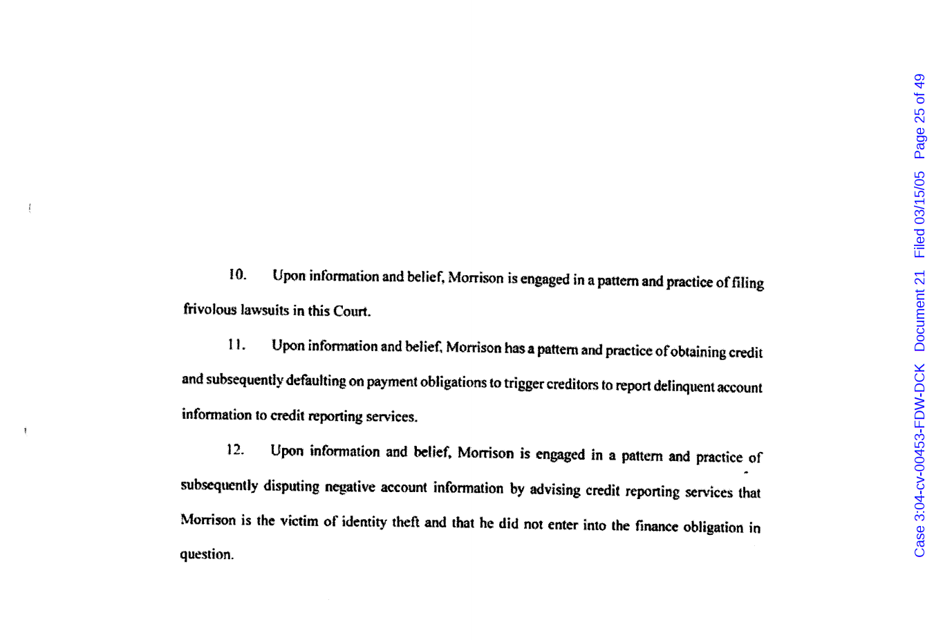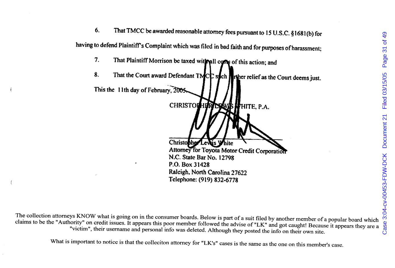 "Lizardking" Last updated on Sep 4, 2024 Public case filing was sourced from PACER from Western District Court of North Carolina. (2005) Morrison vs W. Frank Porter(Page 17 is blank) Previous Arrested for False Police Report Next Tesla Motor Club (2008-2013)