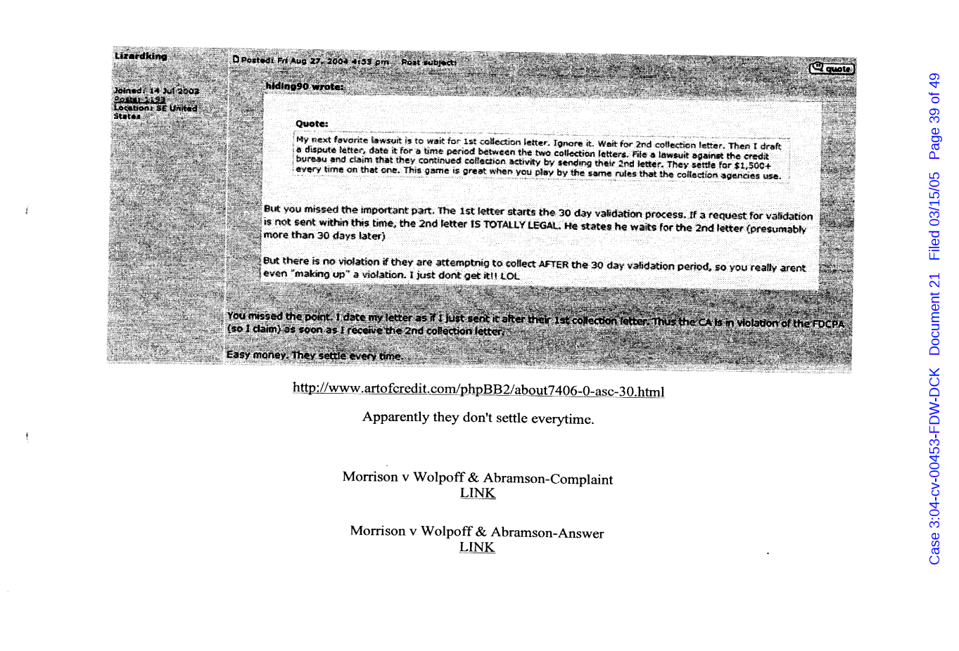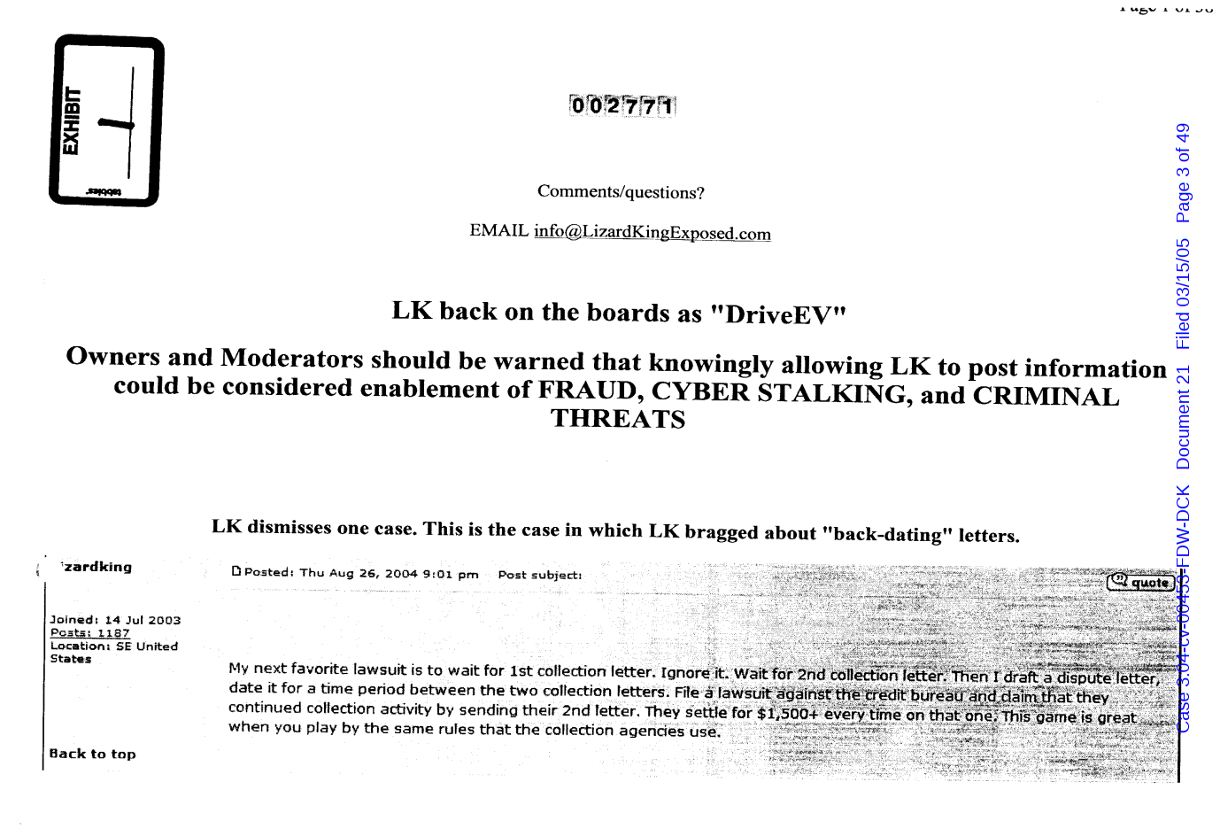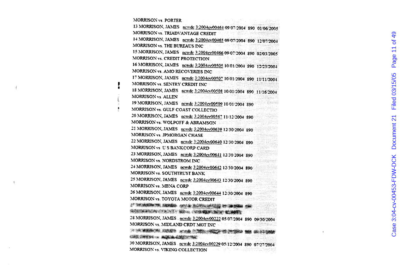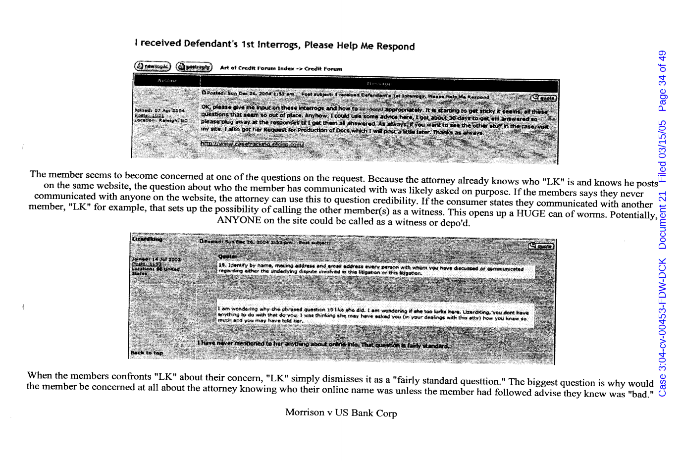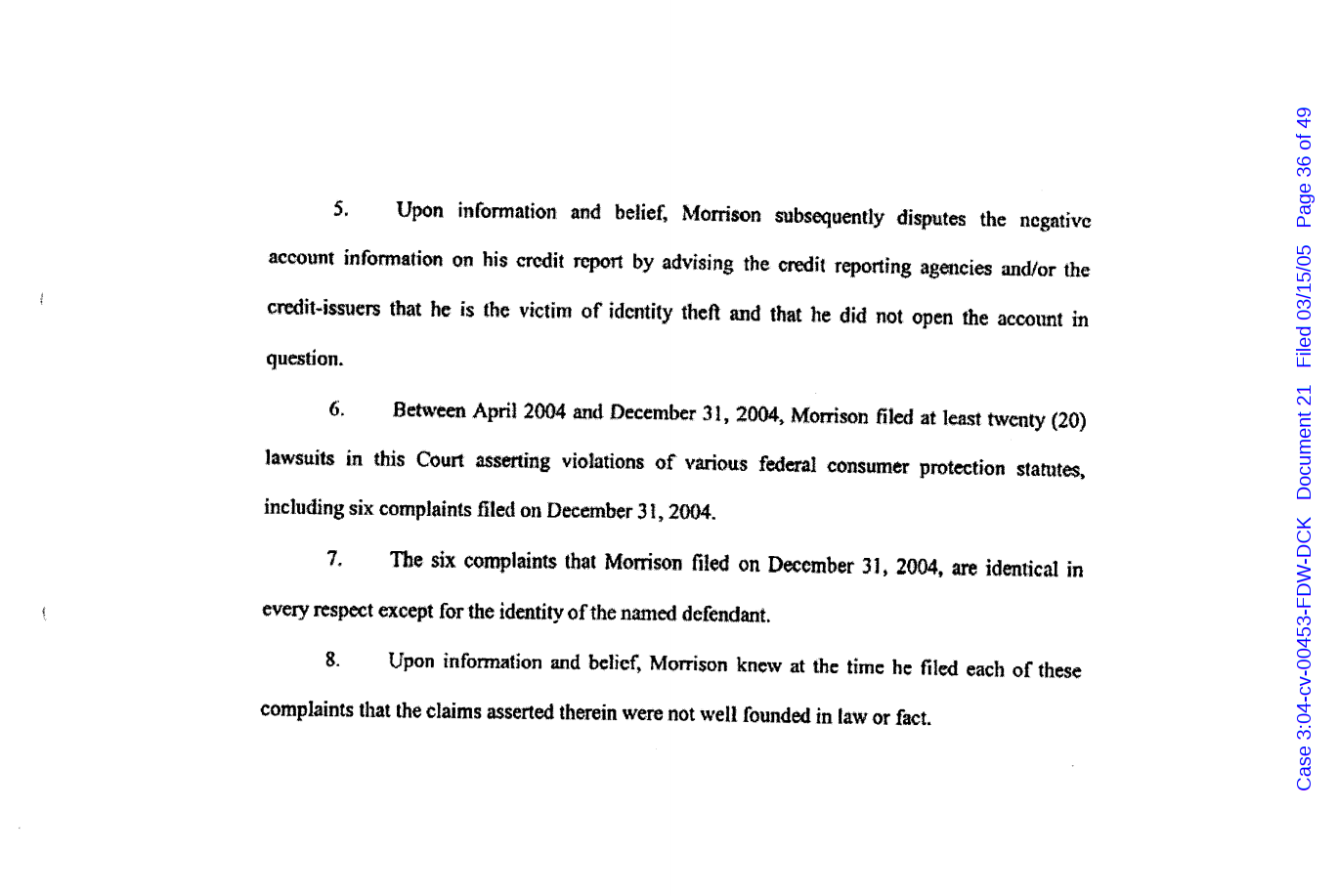 "Lizardking" Last updated on Sep 4, 2024 Public case filing was sourced from PACER from Western District Court of North Carolina. (2005) Morrison vs W. Frank Porter(Page 17 is blank) Previous Arrested for False Police Report Next Tesla Motor Club (2008-2013)