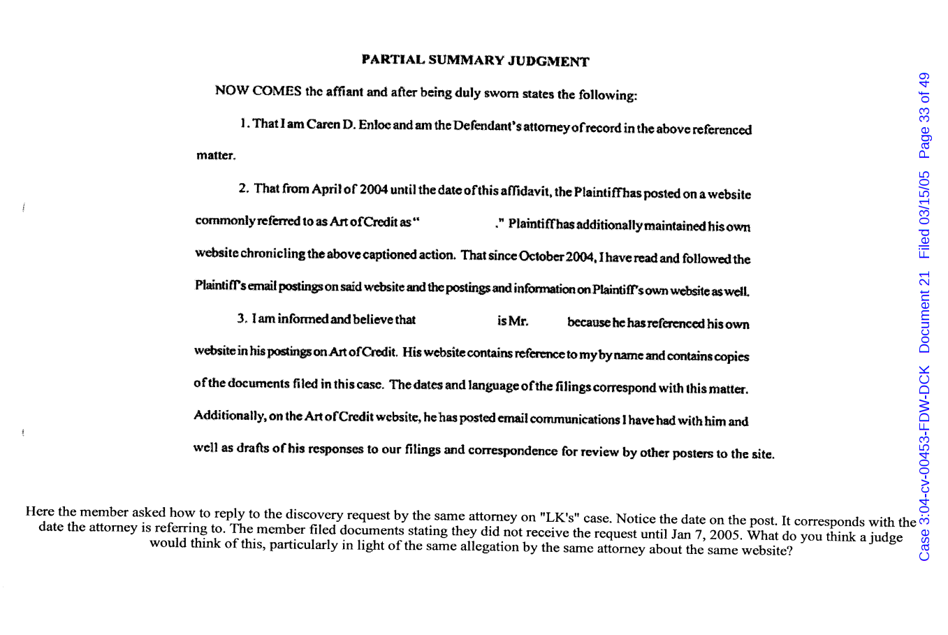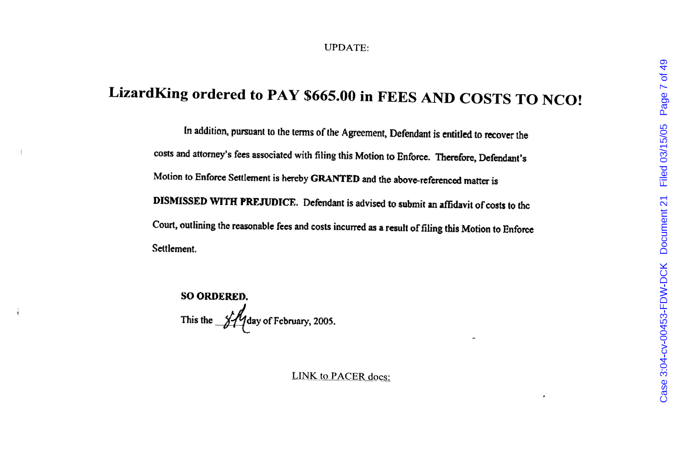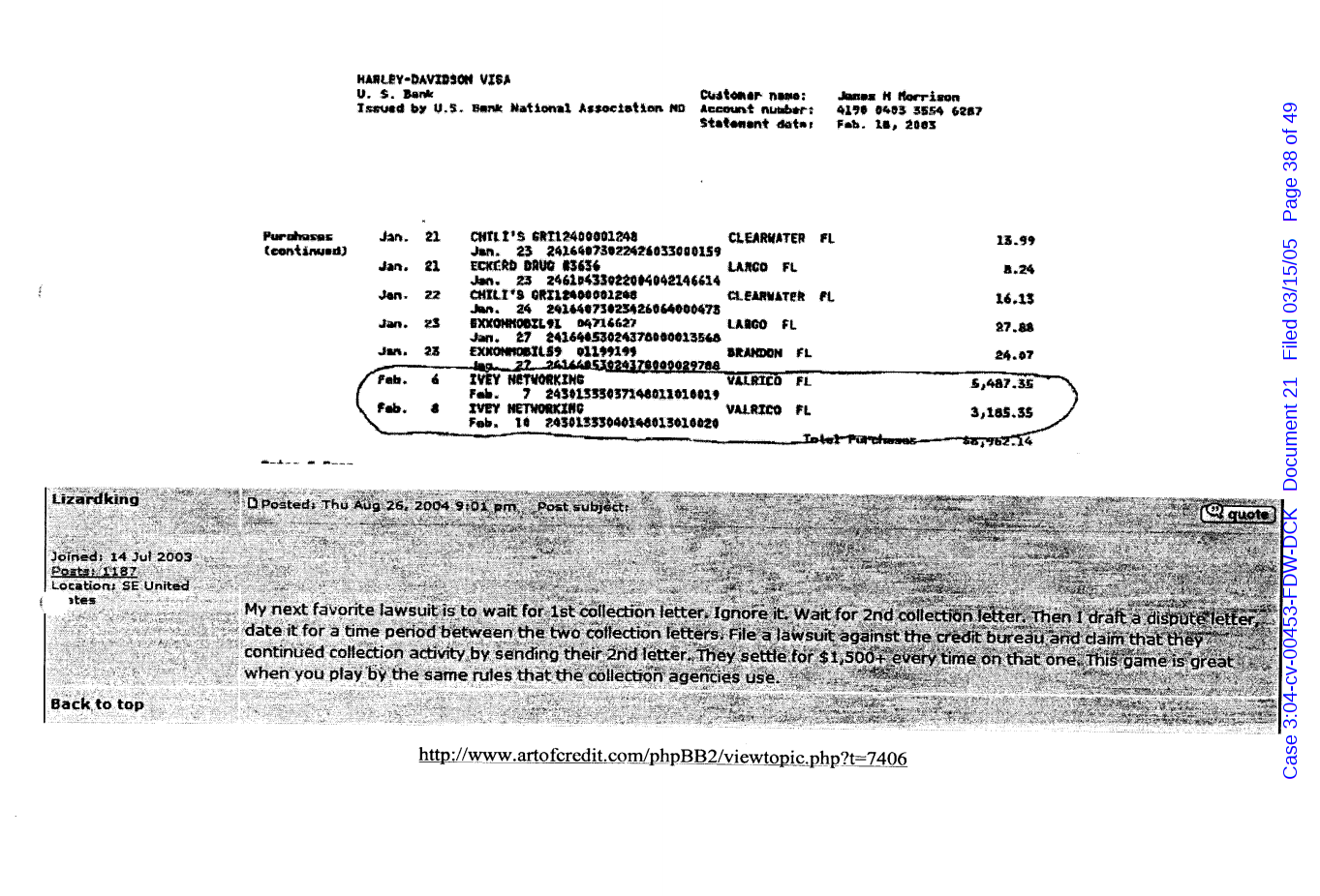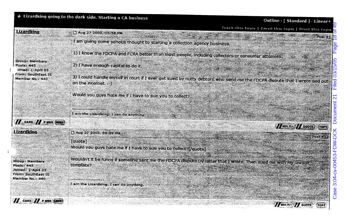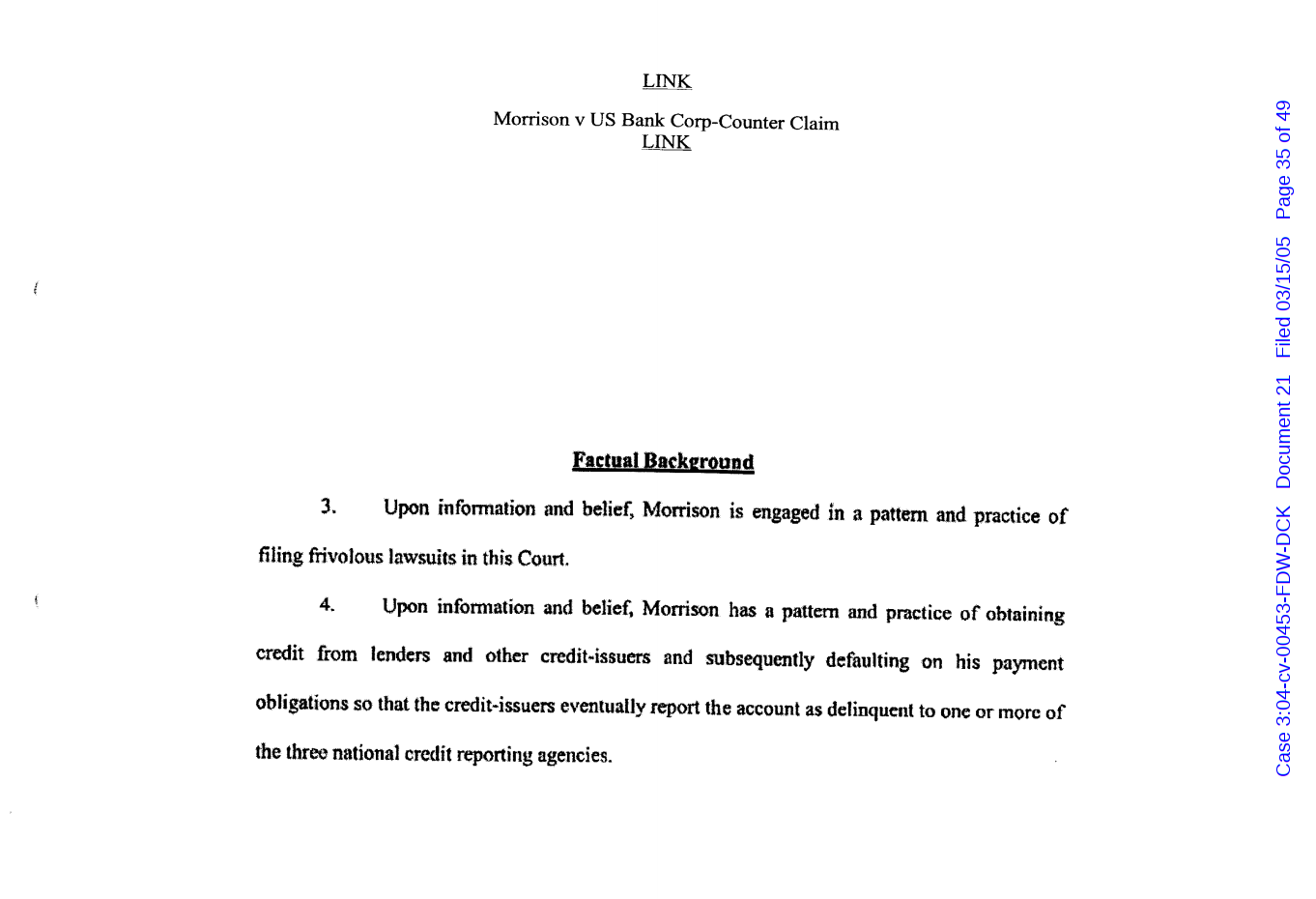 "Lizardking" Last updated on Sep 4, 2024 Public case filing was sourced from PACER from Western District Court of North Carolina. (2005) Morrison vs W. Frank Porter(Page 17 is blank) Previous Arrested for False Police Report Next Tesla Motor Club (2008-2013)