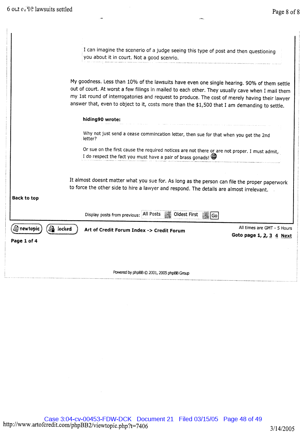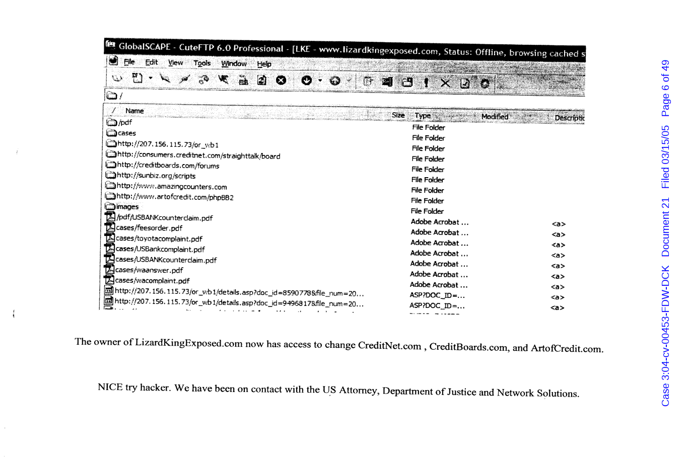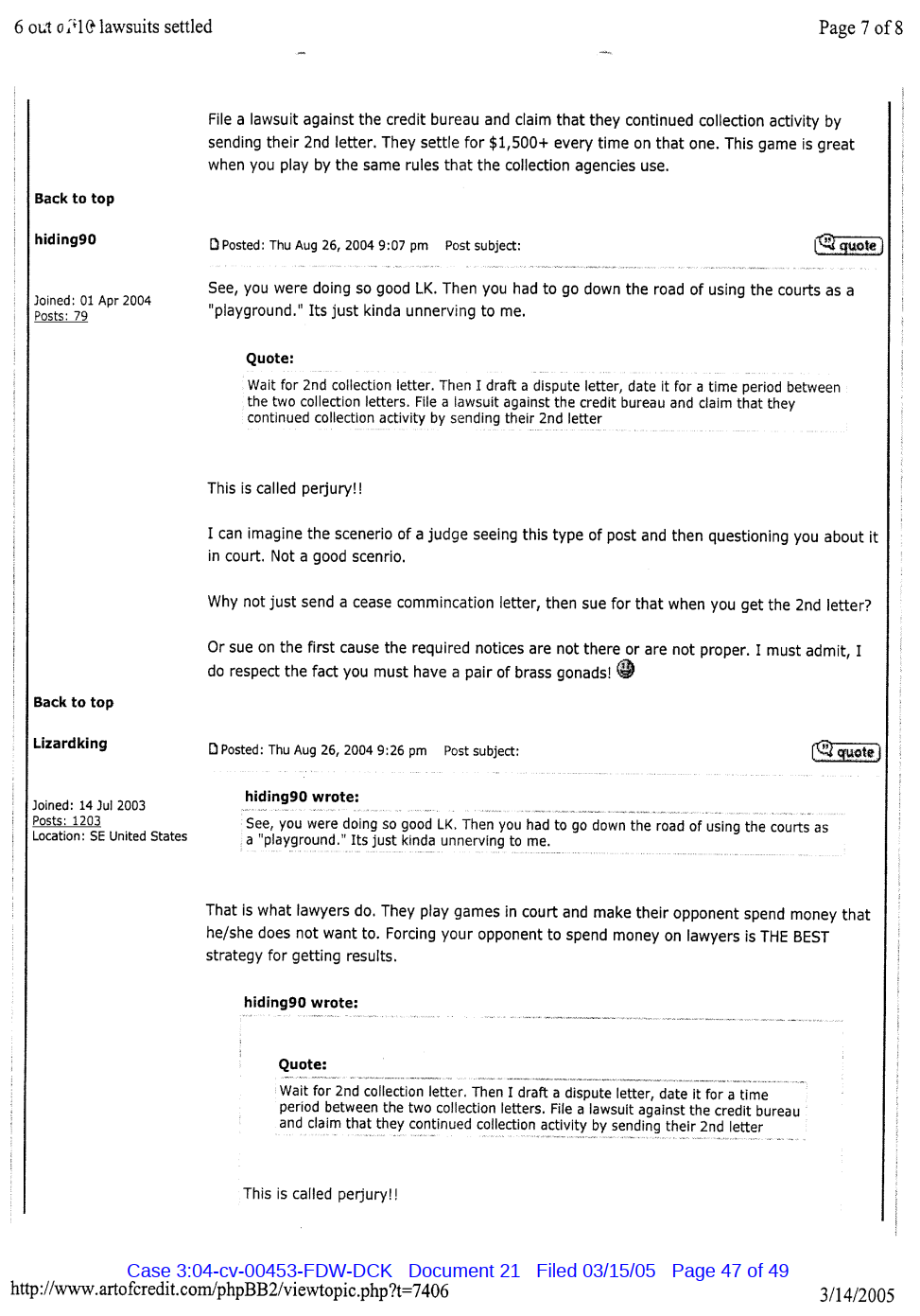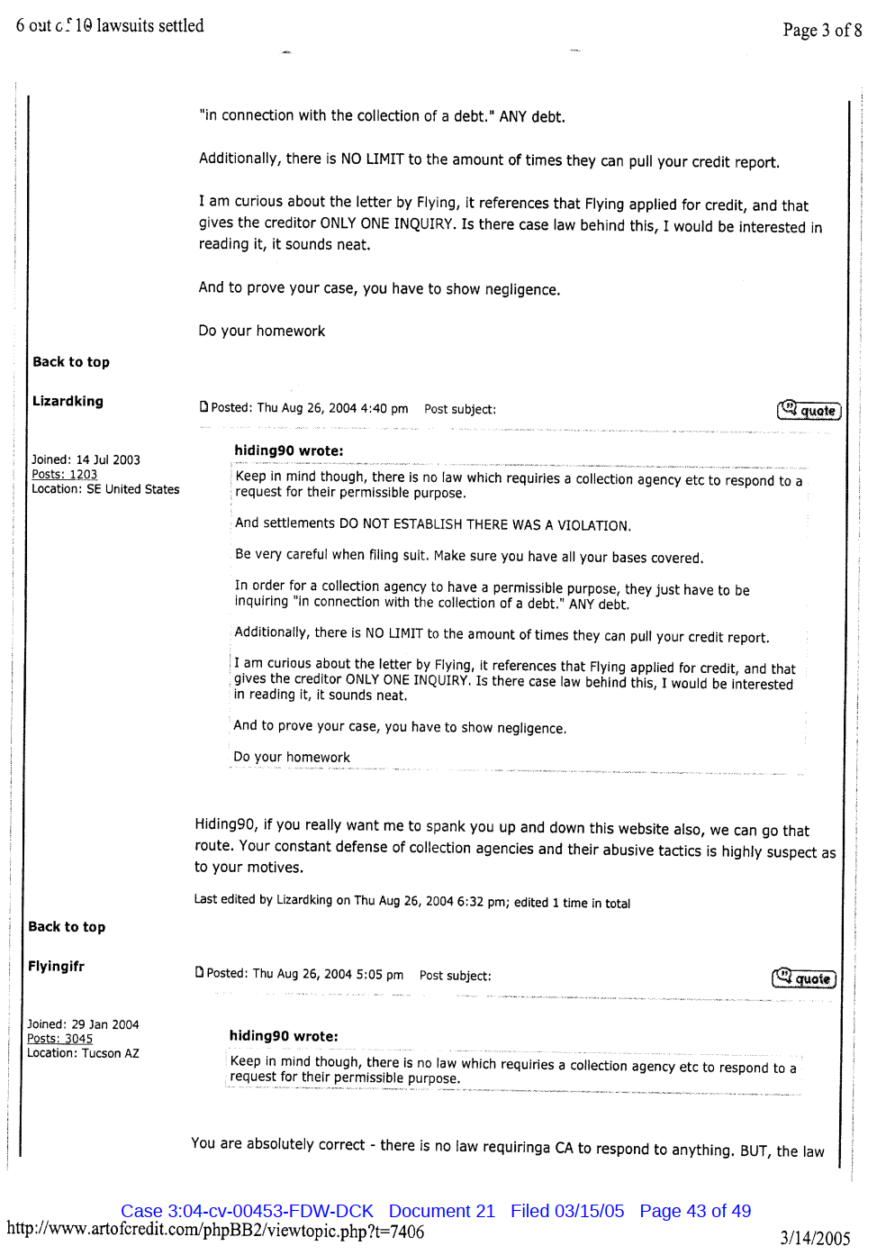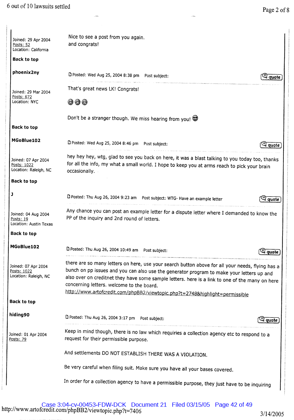 "Lizardking" Last updated on Sep 4, 2024 Public case filing was sourced from PACER from Western District Court of North Carolina. (2005) Morrison vs W. Frank Porter(Page 17 is blank) Previous Arrested for False Police Report Next Tesla Motor Club (2008-2013)