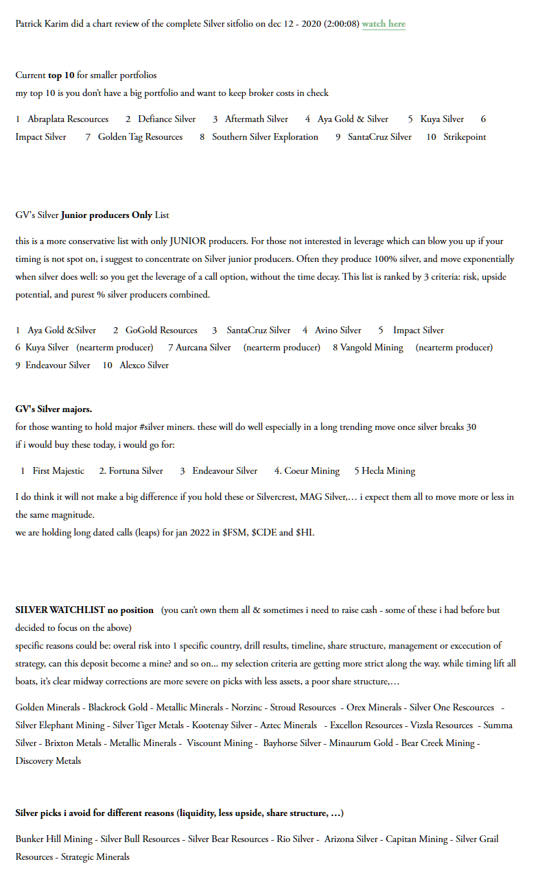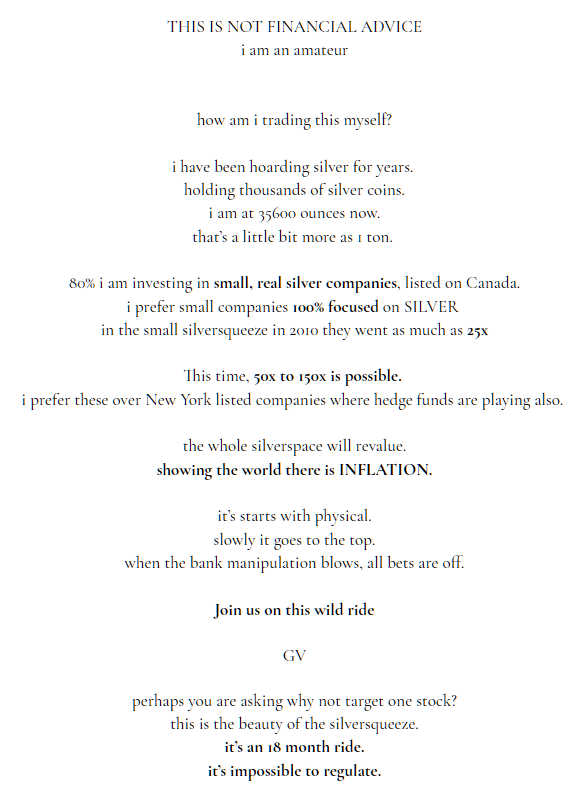 Later in the day, Gold Ventures posts an update to the "plan" encouraging people to buy ETFs and silver miners (stocks).